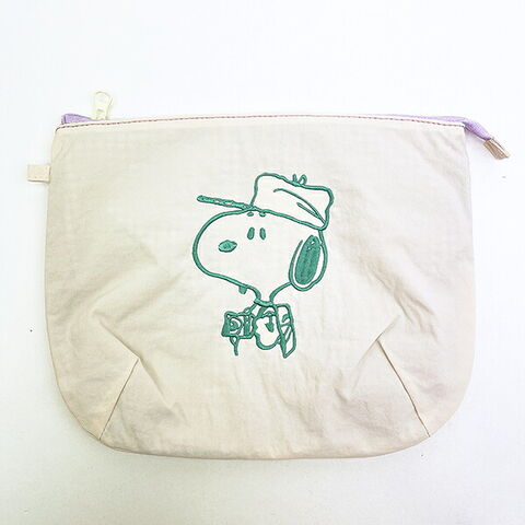 スヌーピー チェックリバーシブルポーチ アイボリー SNOOPY
