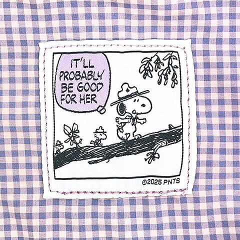 スヌーピーのリバーシブルデザインが可愛いポーチです。コスメや小物などと入れるのにぴったりなサイズ感◎ひっくり返すとチェック柄になっていて、スヌーピーのデザインネームが付いているのがとってもキュート??ぜひ同デザインのトートバッグやナップザックと一緒に揃えてみてください☆彡