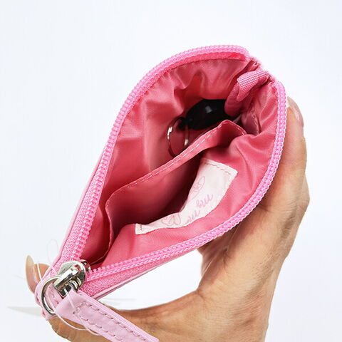 カラビナリング付きでカバンやショルダーポーチなどに付けて便利に持ち運び可能なサンリオのパスポーチです♪リールが付いていて、付属のカラビナでカバンに付けたまま改札やコンビニのタッチをしたりでき、とても便利◎ファスナー式のポーチは小銭入れや小物入れとしてもgood!カードポケットはカードが隠れるフルカバー仕様。カードの落下を防ぐスナップボタン付き♪同シリーズで3ポケットポーチ、ペンケース、トートバッグもありますので揃えて見ませんか♪