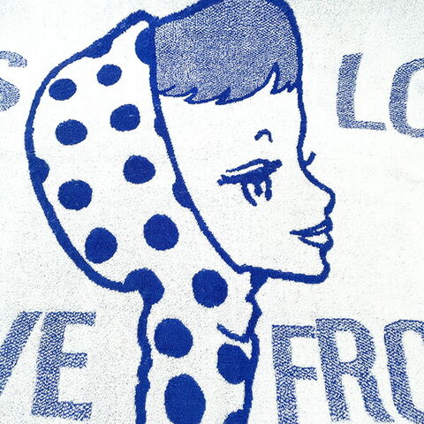 モードガールを描いたカワイイ文化の生みの親”内藤ルネ”の少女柄バスタオルです。タオルケットとしても◎