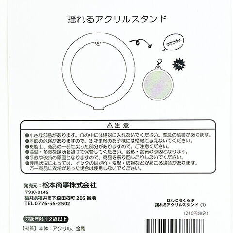 しろころんちゃんがゆらゆら揺れるアクリルスタンドです。ほわころくらぶのほっこりかわいい世界観をお部屋で楽しんで♪キャラクター部分はカニカン仕様となっており、取り外しが可能なので、ポーチ等に付けてチャームとしてもお使い頂けます。◆サイズ:H約100mm