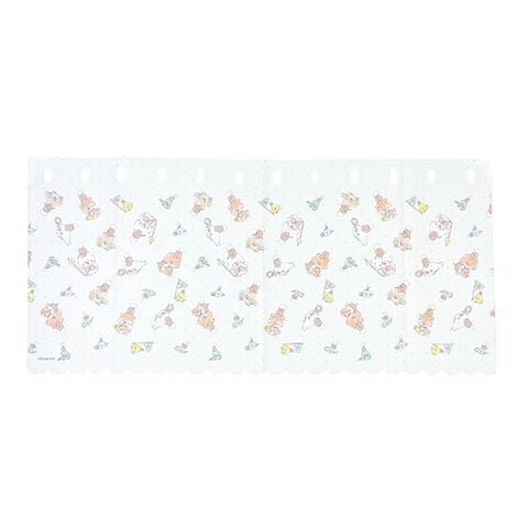 ほわころくらぶの仲間たちのチラシ柄カフェカーテンです。白を基調とした優しい色合いで、インテリアに癒しを添えてくれます♪