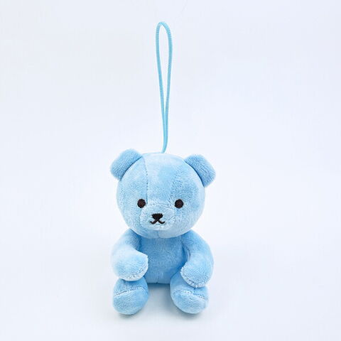 推しハグベアのサラッとタイプです。優しい手触りにすべすべな見た目がカワイイ♪首にヘアゴムをつけて缶バッチをつけると、推しをギュっとしてくれるデザインです。紐があるのでバッグに付けられてうれしい◎