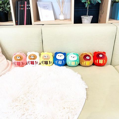 だるまをモチーフにしたクマのぬいぐるみです。紐が付いているのでぶら下げてもカワイイ♪パーフェクトオリジナル商品です!