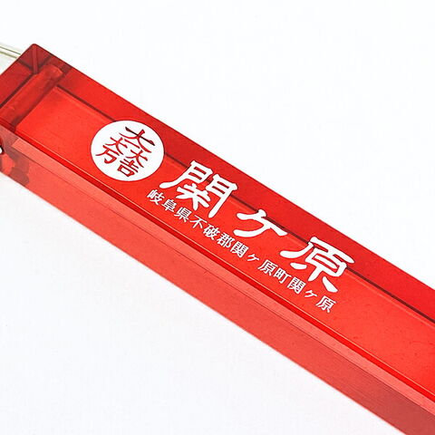 昭和レトロなホテルのルームキーを思わせるアクリルスティックに、日本の歴史を揺るがした大事件の情報を刻印。カラーは、燃えるような情熱や戦火を彷彿とさせる「レッド」で統一。カバンや鍵に付ければ、日常が歴史の舞台へと繋がります。商品の詳細説明レッドが引き立てる宿命の物語:透明感のある鮮やかなレッドのアクリルに、白字の刻印が映えるデザイン。情熱、あるいは歴史の転換点となった「熱量」を感じさせるこの色は、関ヶ原・本能寺の両図柄にふさわしい特別なカラーです。厳選された2つのラインナップ:1600 - 関ヶ原(レッド):「大一大万大吉」の紋と共に、天下分け目の決断を下す場所をイメージ。刻まれた住所は、まさにあの戦場があった地を示しています。1582 - 本能寺(レッド):「織田木瓜」紋と、運命の1582年を刻印。レッドカラーは、あの日炎に包まれた本能寺の記憶を呼び起こすような、深みのある仕上がりです。圧倒的な存在感の15cmサイズ:全長150mmのロングスティックは、バッグチャームとしてもインパクト抜群。昭和のノスタルジーを感じさせつつ、現代のファッションにも馴染む絶妙なレトロモダン・アイテムです。細部まで再現された「ホテル仕様」:「ロゴ(家紋)」「ホテル名(地名)」「住所(史跡住所)」「部屋番号(年号)」という構成は、まるで本物の歴史ホテルの備品のようです。仕様・スペック項目内容カラーレッド(透明感のあるクリアレッド)バリエーション関ヶ原(1600)、本能寺(1582)サイズスティック部分:150mm × 18mm角素材本体:アクリル / 金具:亜鉛合金刻印内容家紋、歴史的地名、史跡の現住所、事件の年号おすすめの活用シーン歴史巡りの旅のお供に: 岐阜県関ケ原町や京都の本能寺跡を訪れる際のメインアクセサリーとして。「赤」を愛する武将ファンへ: 井伊の赤備えや真田の赤など、赤を象徴とするファンの方の「推し色」アイテムとして。インパクトのある贈り物に: 昭和レトロと戦国時代が好きな方へ。このサイズ感とデザインは、必ず会話のきっかけになります。情熱の赤に刻まれた、関ヶ原と本能寺の記憶。このルームキーホルダーを手に、歴史のロマンに「チェックイン」してみませんか?
