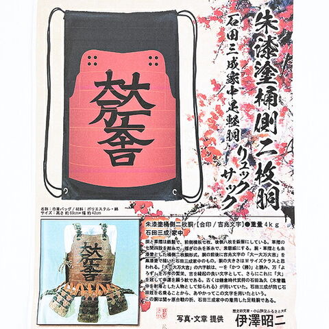 石田三成 石田家中リュックサック(大一大万大吉・朱漆塗桶側二枚胴デザイン) 戦国 武将 戦 歴史 日本史 戦国グッズ