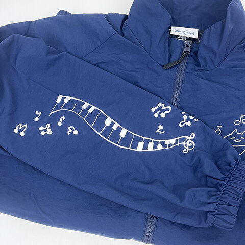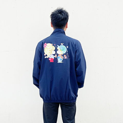 かわいい『カップル』のイラストがバックプリントに描かれた、さらっとした着心地のキュートなナイロンジャケットです。胸元にはネコのミータン、袖口には音符のイラストが描かれており、どこから見てもかわいい!MサイズとLサイズの2サイズ展開です。【Lサイズ:着丈73、身幅68、裄丈90】