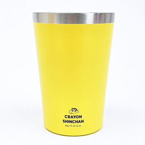 日焼けしたしんちゃんがカワイイデザインのステンレスタンブラーです。二重構造なので保温保冷にすぐれているので、飲み物の温度を保ちやすい♪