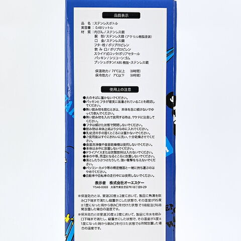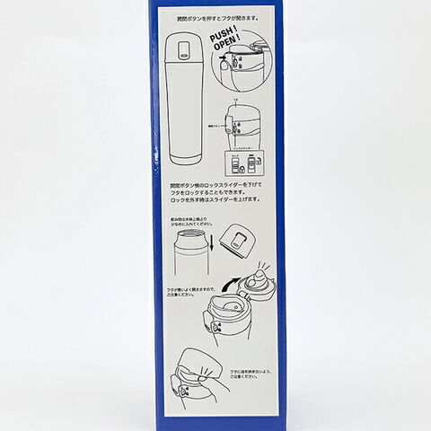 素材:内ビン:ステンレス鋼、胴部:ステンレス鋼(アクリル樹脂塗装)、口金:ステンレス鋼、フタ・栓:ポリプロピレン、飲み口:ポリプロピレン、スライド式ロック:ポリアセタール、パッキン:シリコーンゴム、プッシュボタン:ABS樹脂・ステンレス鋼