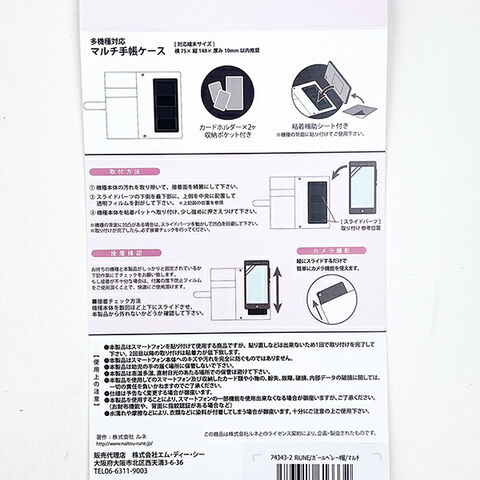 多機種対応のマルチ手帳ケースです。カードホルダー×2付きで使い勝手◎縦にスライドするだけで簡単にカメラ機能が使えます!【対応端末サイズ:14.8cm×7.5cm×1cm】