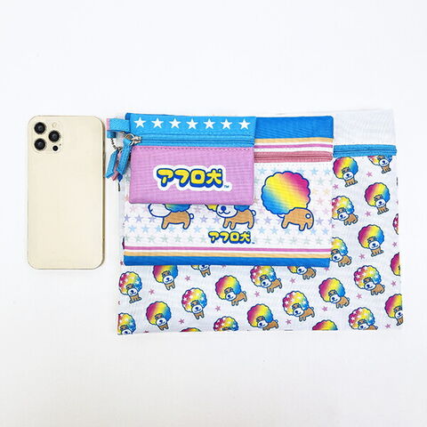 大きさの違う3つのポーチのセットです。カードや通帳など、大きさや用途に合わせて収納できます。サイズ:(大)約270×210mm(中)約190×140mm(小)約110×80mm