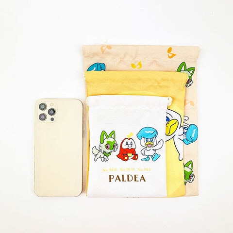 パルデア地方のポケモンたちがデザインされた大中小の3サイズの巾着袋セット。色々な使い方を楽しめます♪◆サイズ:(L)約180x230mm、(M)約150x190mm、(S)約120x150mm