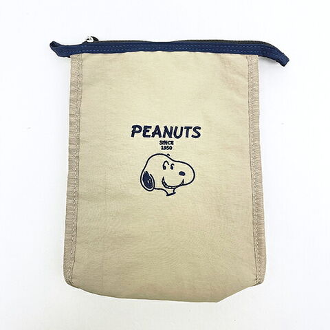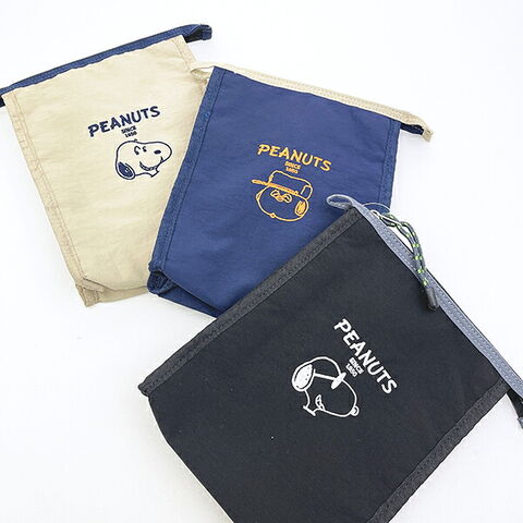 スヌーピーのスタンドポーチです。コスメや充電器、文房具などをまとめて入れても余裕があります♪旅行や外出時のサブポーチとしても◎背面には大きなポケット付きで、スポーティーなデザインもキュート☆彡