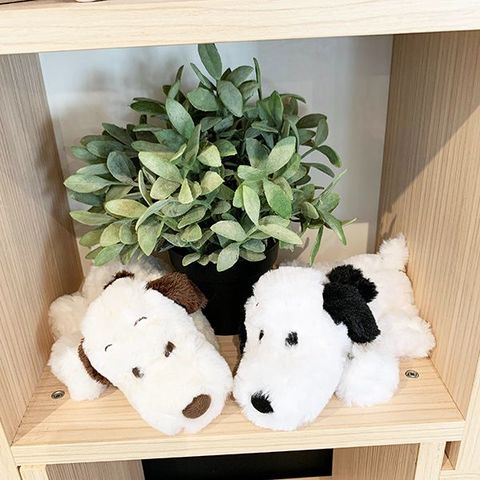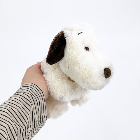 ボア素材のくったり柔らかいスヌーピーのぬいぐるみです。手触りや抱き心地が抜群!大きすぎないのでお出かけにも連れて行けますよ♪