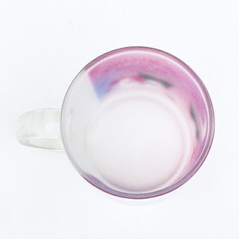 すりガラスのようなガラスデザインにイラストが入っており、ふんわりとしたデザインがカワイイマグカップです。