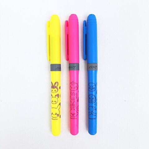 ピンク、ブルーイエローの3本セットです。ペン先が平なのでマーカーとして線も引きやすい!