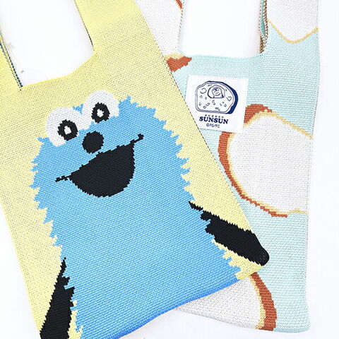 パペットスンスンのニットトートバッグです。柔らかい素材で使い勝手が◎500mlのペットボトルが入ります!エコバッグやサブバッグにぴったりです☆