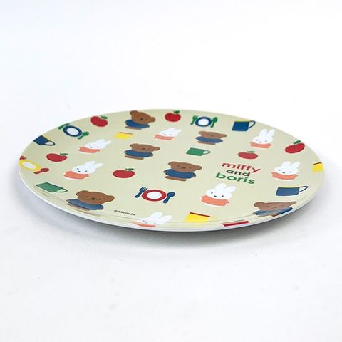 ミッフィーとボリスのりんごの絵がかわいいメラミンプレートです。電子レンジ、食洗器不可。耐熱温度100℃◆サイズ:20cm×20cm×1.5cm