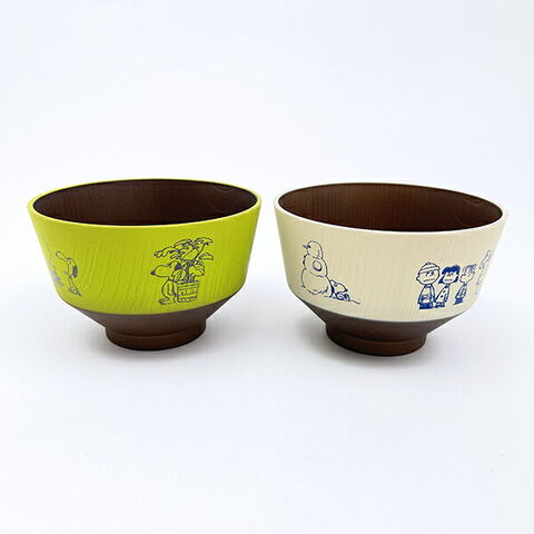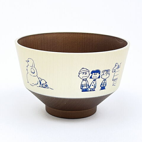 スヌーピーの汁椀です♪温かみのある木目調が特徴で軽くて割れにくい、上品な樹脂食器。小さなお子様から年配の方まで安心して使えます。食洗機・電子レンジ使用可◎