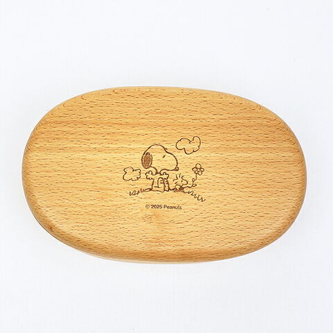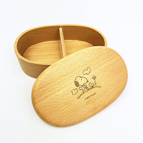 スヌーピーの木製くりぬきランチボックスです。詰めやすい仕切付き!シンプルで使いやすく、飽きの来ないデザインがgoodです☆