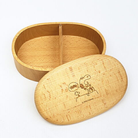 スヌーピーの木製くりぬきランチボックスです。詰めやすい仕切付き!シンプルで使いやすく、飽きの来ないデザインがgoodです☆