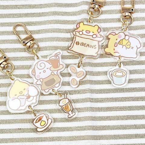 マフィンコーナーとは、マフィンカフェの住人達です。食べることが大好きで、それぞれ個性のある優しいキャラクターになっています。キャラクターと美味しそうなコーヒーモチーフの2連キーホルダーです。ゆらゆら揺れてカワイイ♪フック部分も付けやすいデザインで、バッグに付けやすくて嬉しい!