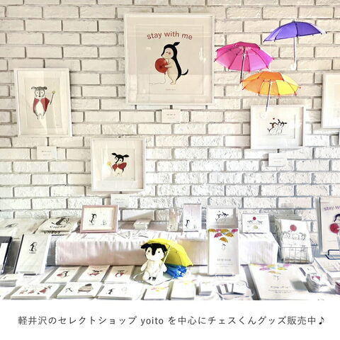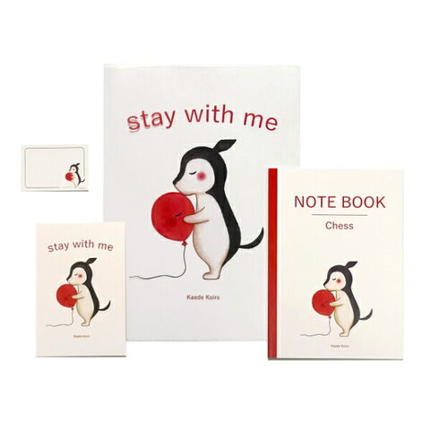 チェスくんと赤い風船のA4クリアファイル。裏表共に透けるデザインになっており、白い紙を入れるとイラストがはっきりと浮かびあがります。stay with meは「そばにいて」「一緒にいましょう」という意味。自分用にはもちろん、大切な人へのちょっとしたプレゼントにも最適です。2022年春制作。