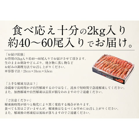 赤海老 天然 赤えび 2kg(約40~60尾入り) アルゼンチン赤海老 赤エビ