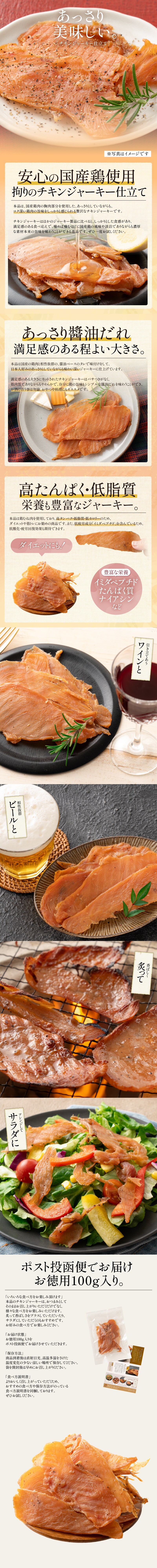 お肉屋さんのチキンジャーキー たっぷり 100g チキンジャーキー ジャーキー 国産 鶏肉 お肉 チキン おつまみ グルメ 肉料理 大容量 食べ物 つまみ 美味しい 酒の肴 やみつき 贈り物 お取り寄せ 手土産 送料無料