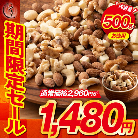 ホワイトチョコ ナッツ 種類が選べる 500g 【当店通常価格2,960円→送料無料1,480円!】素焼き 無塩 5種類 ミックスナッツ ミルクチョコ ホワイトチョコ アーモンド カシューナッツ クルミ マカダミアナッツ 食塩不使用 加工オイル不使用 ナッツ 選べる 送料無料