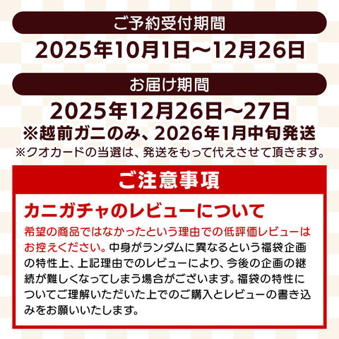 【抽選で越前ガニが当たる!】 カニガチャ カニ福袋 運試し福袋 かに カニ 蟹 福袋 ずわいがに ズワイ蟹 ズワイ ズワイガニ カニポーション 蟹ポーション 毛蟹 毛ガニ ボイル 越前蟹 カニ鍋 運試し 新年 年末 年末年始 お年玉