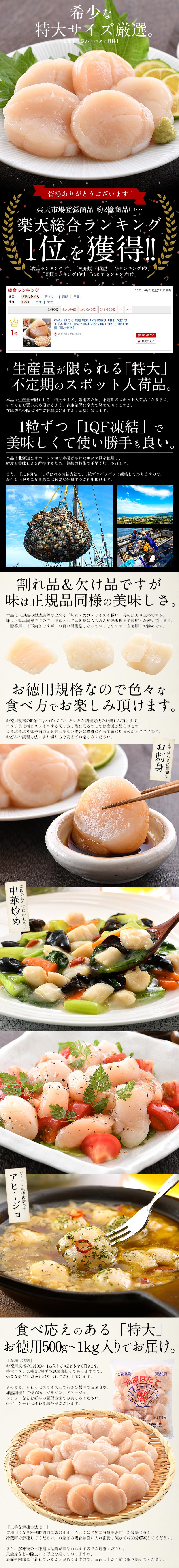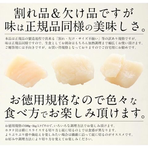 ホタテ ほたて 貝柱 特大 500g 訳あり(割れ 欠け サイズ不揃い) ほたて貝柱 ホタテ貝柱 帆立 緊急支援品