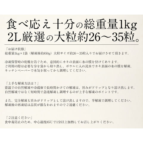 カキ かき 牡蠣 剥き身 1kg(解凍後850g/大粒2L約26~35粒)広島県産