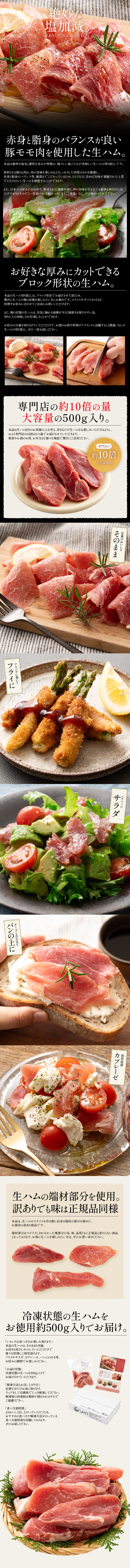 訳あり 生ハム 切り落とし 500g 端材 ブロック 業務用 大容量 お徳用 パーティー 生ハム おつまみ ギフト プレゼント 冷凍 おかず 洋風 総菜 朝ごはん 朝食 オードブル