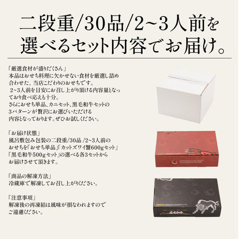 セットが選べる迎春おせち 2段重 30品 【早割特価 当店通常価格14,000円→送料無料13,000円!】2025 ずわい蟹 黒毛和牛 おせち 二段重 冷凍 おせち料理 お節料理 御節 年始 グルメ 二人前 三人前 2人前 3人前 少人数 おせちセット 和風 冷凍おせち お歳暮
