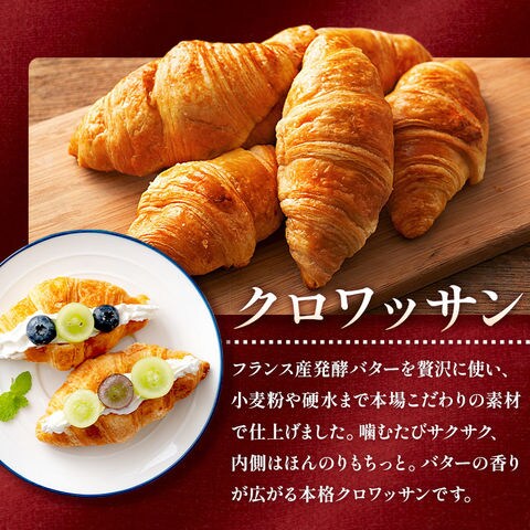 | 【ミニクロワッサン】小麦粉、バター、砂糖、イースト、小麦グルテン、食塩、鶏卵 /