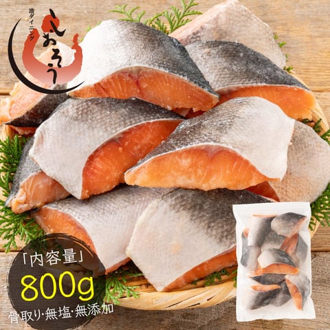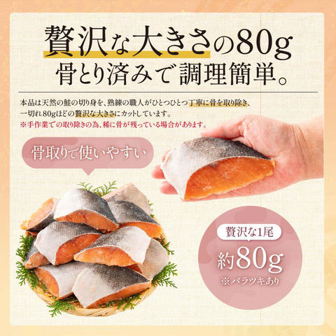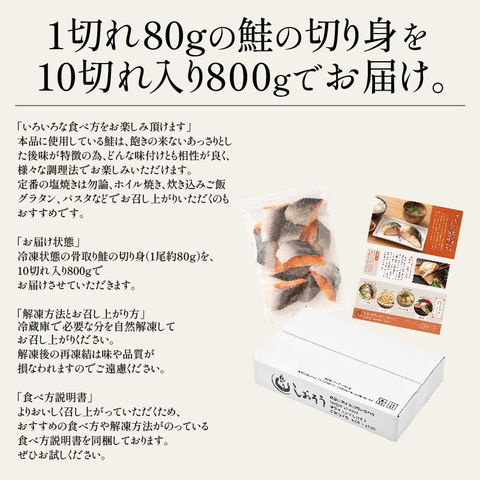 【無添加・無塩】プレミアム 骨取り 鮭 サケ 切り身 大サイズ (80g×10切) 天然 骨なし チャック袋 バラ凍結 冷凍 グルメ ギフト プレゼント