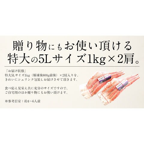 かに カニ 蟹 タラバガニ 足 特大 5L 1kg×2肩(解凍後1.6kg前後) タラバ蟹 たらばがに たらば蟹 脚