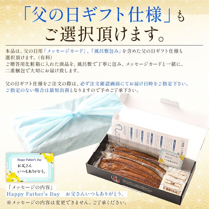 うなぎ 蒲焼き 【父の日ギフトセット】 国産 無頭 特大サイズ 200g前後×3尾 ウナギ 鰻 化粧箱 プレゼント 贈り物 ギフト