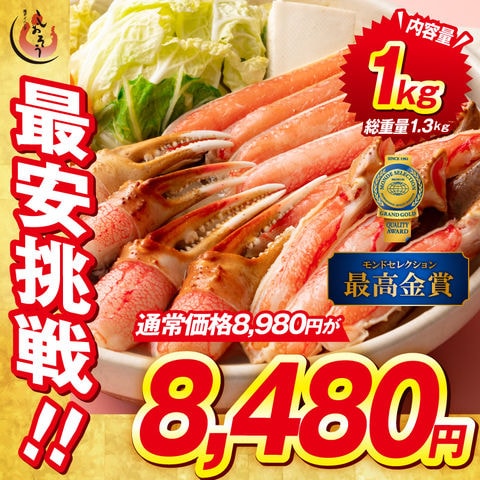 かに カニ 蟹 【当店通常価格8,980円⇒送料無料8,480円!】ズワイガニ むき身 ポーション お刺身OK 生 カット済み 1kg(総重量1.3kg) ずわい蟹 鍋 かにしゃぶ プレゼント 贈り物 ギフト
