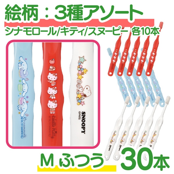 【メール便で送料無料】Ci502 Mふつう 歯ブラシ 子供 まとめ買い 子供向け キャラクター 歯ブラシ 30本セット (シナモロール・キティ・スヌーピー)(メール便2点まで) set