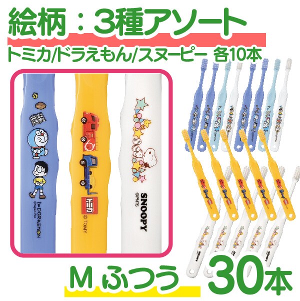 【メール便で送料無料】Ci502 Mふつう 歯ブラシ 子供 まとめ買い 子供向け キャラクター 歯ブラシ 30本セット (トミカ・ドラえもん・スヌーピー)(メール便2点まで) set