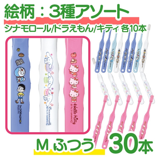 【メール便で送料無料】Ci502 Mふつう 歯ブラシ 子供 まとめ買い 子供向け キャラクター 歯ブラシ 30本セット (シナモロール・ドラえもん・キティ)(メール便2点まで) set