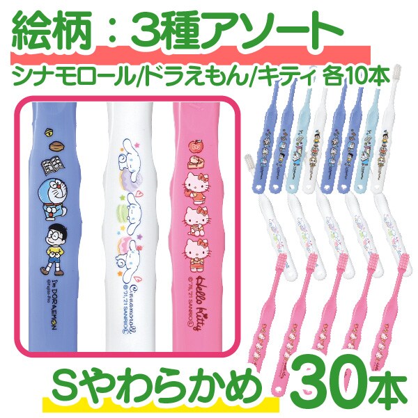 【メール便で送料無料】Ci503 Sやわらかめ 歯ブラシ 子供 まとめ買い 子供向け キャラクター 歯ブラシ 30本セット (シナモロール・ドラえもん・キティ)(メール便2点まで) set