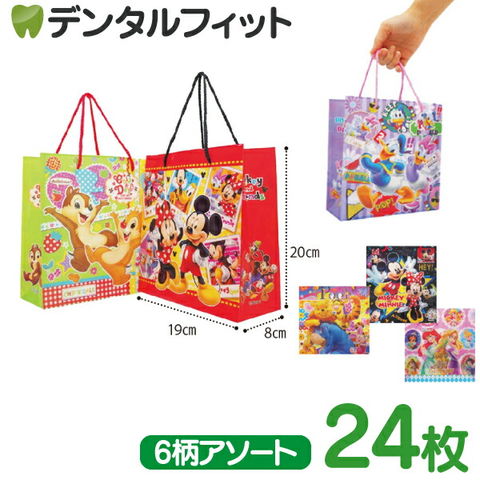 ディズニーギフトバッグ 6柄アソート 1袋 (24枚入) 【マチ付き ディズニー キャラクター 紙袋 プレゼント 景品 】
