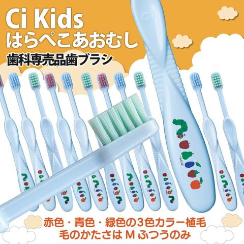 \ベビー用歯ブラシランキング1位獲得!/Ciキッズ 歯ブラシ エリックカール はらぺこあおむし柄 ブルー Mふつう 30本入