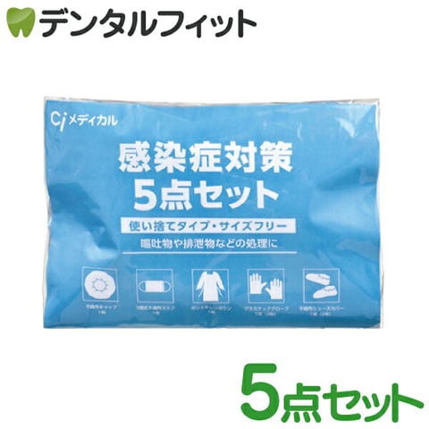 感染症対策5点セット 1個【Ciメディカル 不織布キャップ 3層式不織布マスク ポリエチレンガウン プラスチックグローブ 不織布シューズカバー 使い捨て 防護服 】