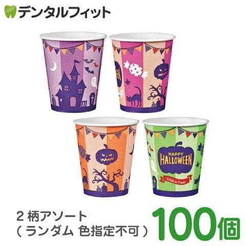 ハロウィン 紙コップ 100個 (5オンス) かわいい 内面防水処理 2柄アソート ロースタッキングタイプ パーティ イベント 絵柄※カラーは当店おまかせとなります