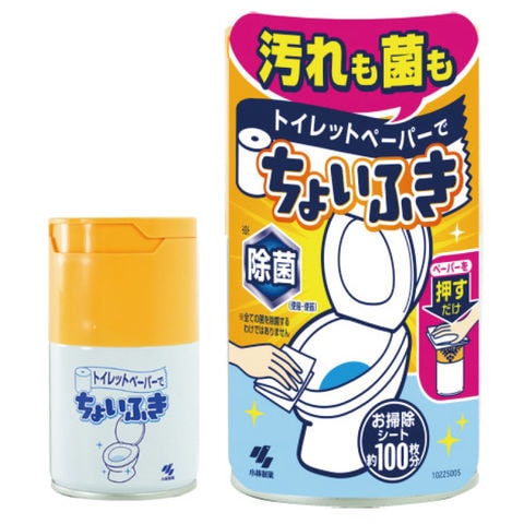 小林製薬 トイレットペーパーでちょいふき 1本(120mL) トイレットペーパーを上から当て、ひと押しで除菌シートに 便座や床などの汚れを手軽に拭ける お掃除シート約100枚分