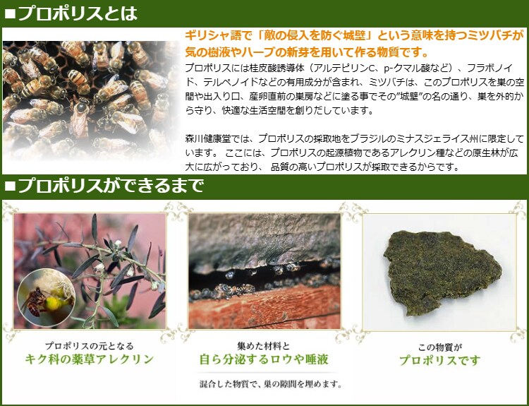 プロポリスは、蜜蜂社会を守っているすばらしい物質です。森林浴効果の高いフラボノイドがきわめて多く含まれています。